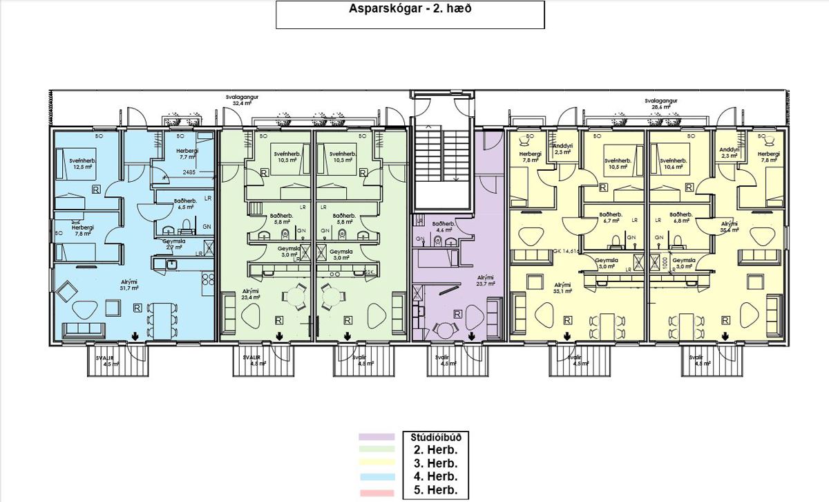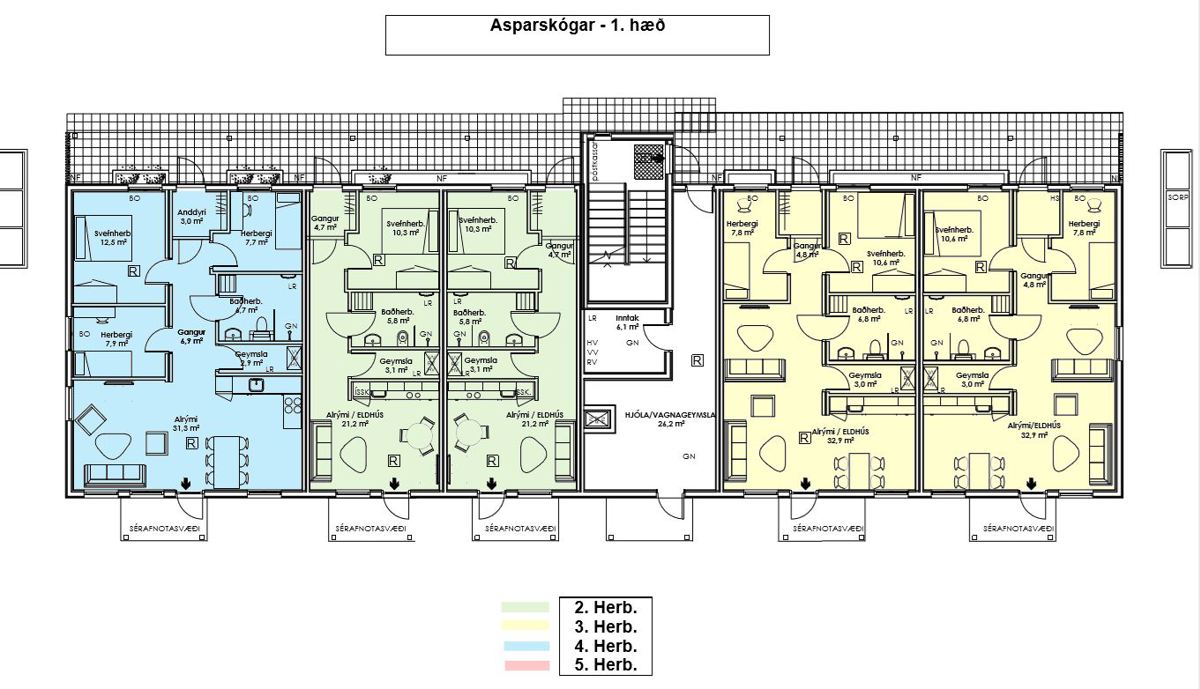 Bjarg houses in Asparskógar are three, all of which have the same layout. All three houses are on two floors and consist of studio apartments, one, two and three bedroom apartments. Pets are allowed in a few apartments in the building but applicants must mark in the application if they want an apartment allowing pets. See Bjarg's rules on keeping pets.