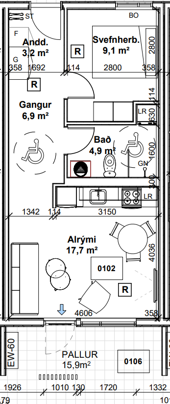 The houses are on two floors, with 1, 2 and 3-bedroom apartments. First apartments were ready for rent in November 2023. Pets are allowed in a few apartments in the building but applicants must mark in the application if they want an apartment allowing pets. See Bjarg's rules on keeping pets.