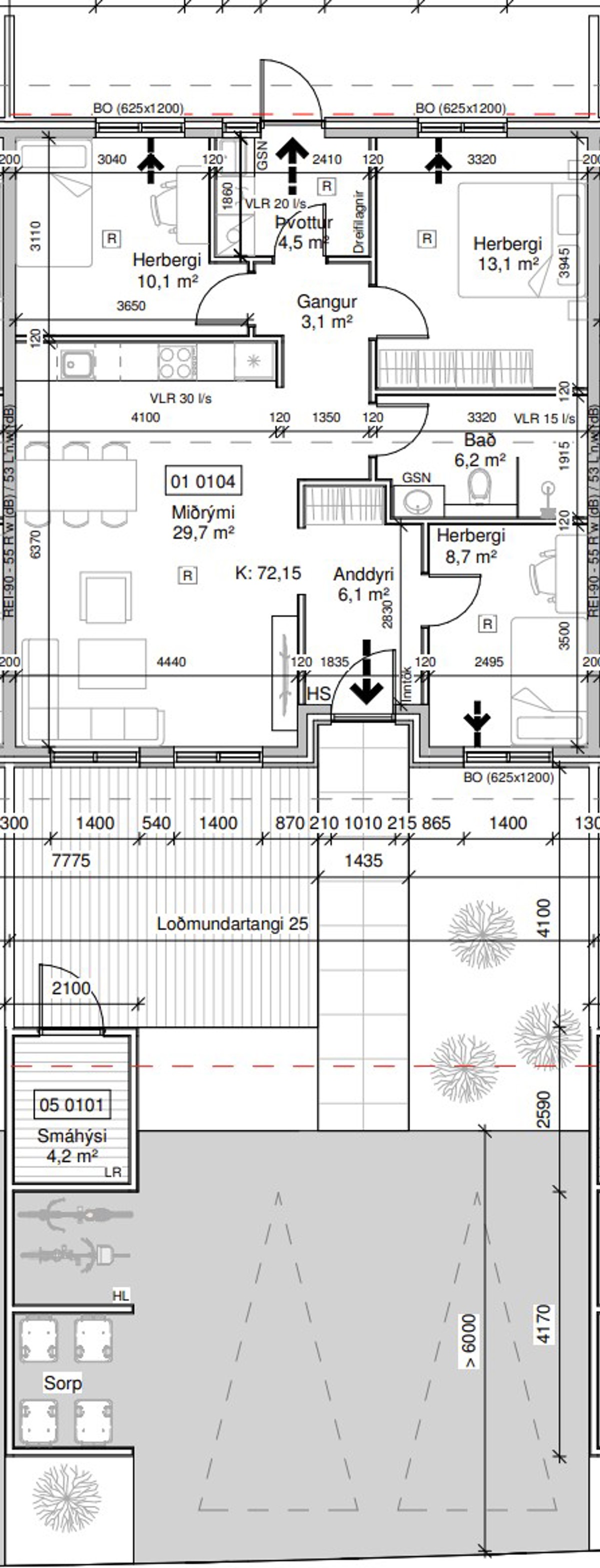 Five three bedroom apartments in Loðmundartangi in Flúðir (postal code 845). Constructions started June 18th 2025 and the apartments are expected to be ready for rent in June 2026.