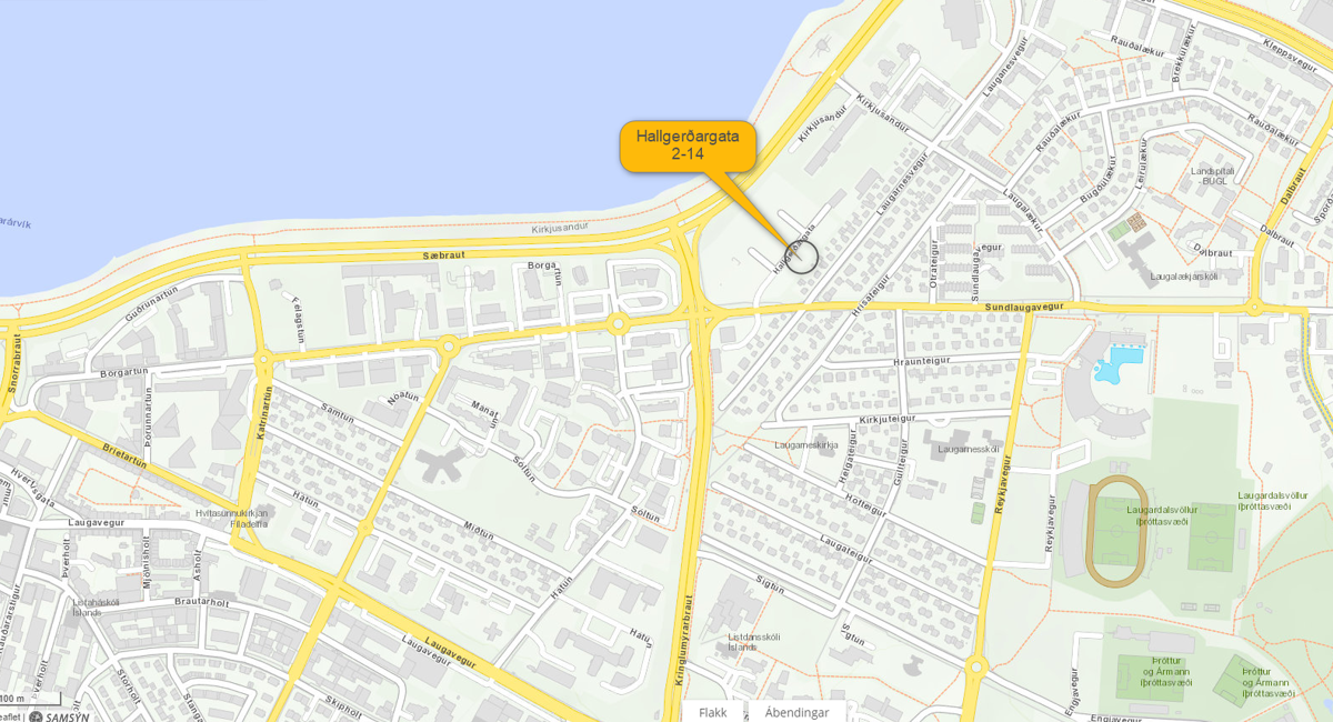 The neighborhood of Hallgerðargata is, for example, the coastline and Laugardalur. Hallgerðargatan is close to the old and established neighborhoods of Teigar and Lækir. Shops and services are the neighborhood, for example, Laugardalslaug (Thermal outdoor pool), Skautahöll (The ice skating rink in Laugardalur), Botanical Gardens, Húsdýragarðurinn (Reykjavík Family park & zoo) Sigurjón Ólafsson's Museum and Sólheimabókasafn.