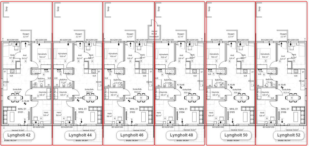 Six apartments in Lyngholt 42-52, 640 Húsavík.