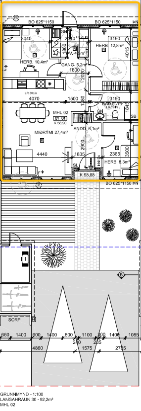 Bjargs apartments in Hveragerði are 10 and are in two houses in Langahraun 28-46. All apartments have three bedrooms.