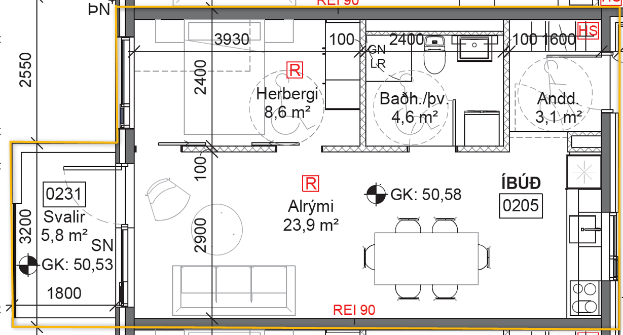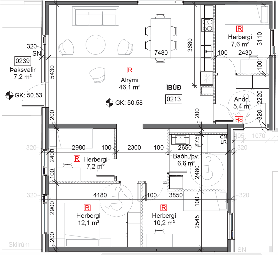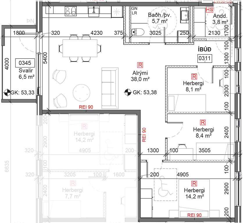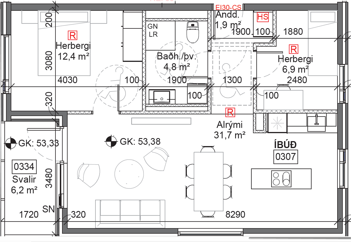 Here you can see a video taken in a similar one-bedroom apartment in Nónhamar 5 (no. 404, 49,3 m²)