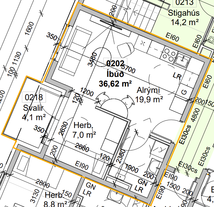 Here you can find the layout for Urðarbrunnur 130-132 and Urðarbrunnur 33.