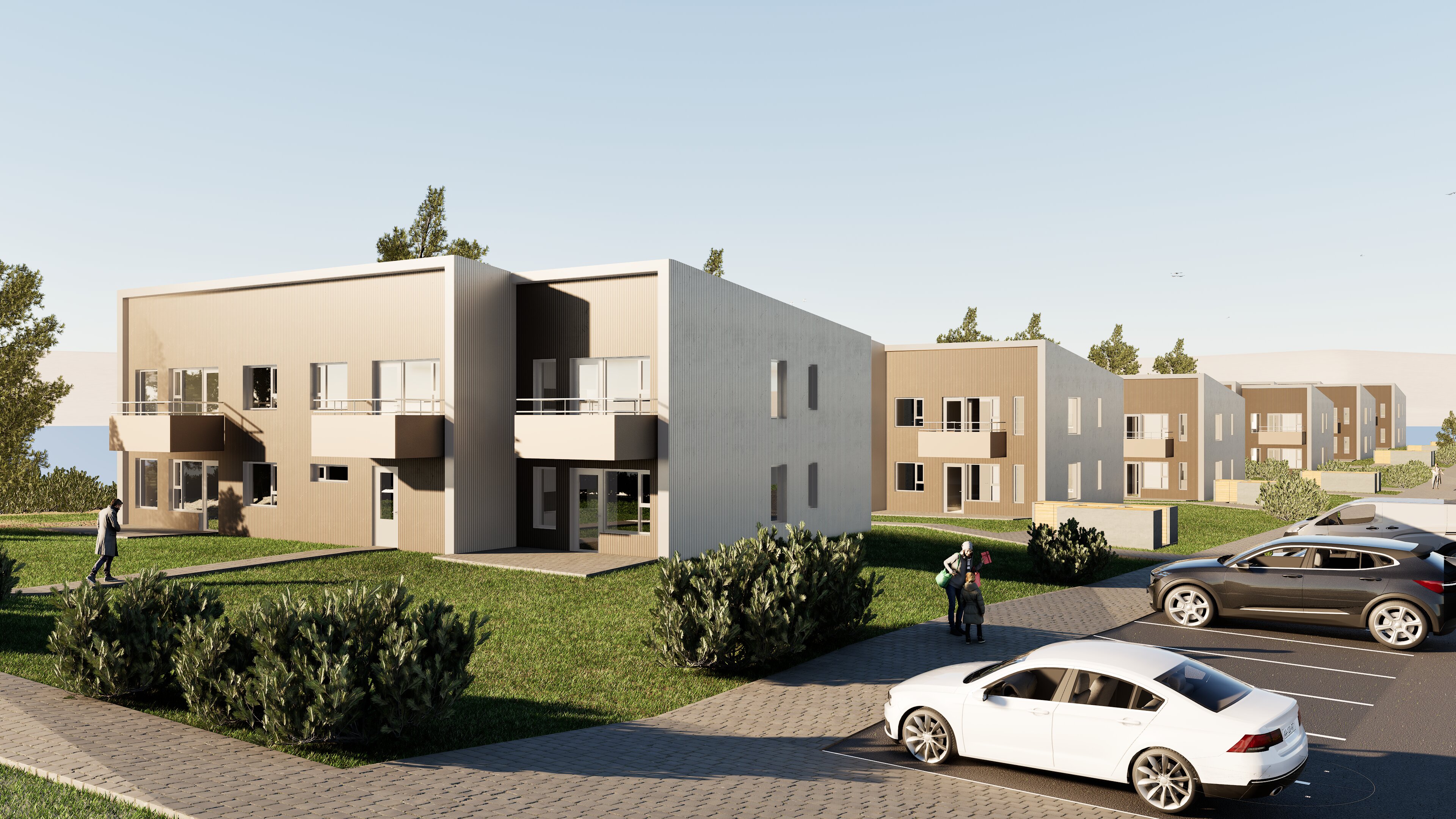Fyrsta skóflustunga var tekin í dag að 30 leiguíbúðum í sex húsum við Trölladal 1-11 í Reykjanesbæ. Áætlað er að fyrstu íbúðirnar verði tilbúnar í júlí 2026, en húsin verða afhent á sex mismunandi dagsetningum. Opnað verður fyrir umsóknir í október á þessu ári.