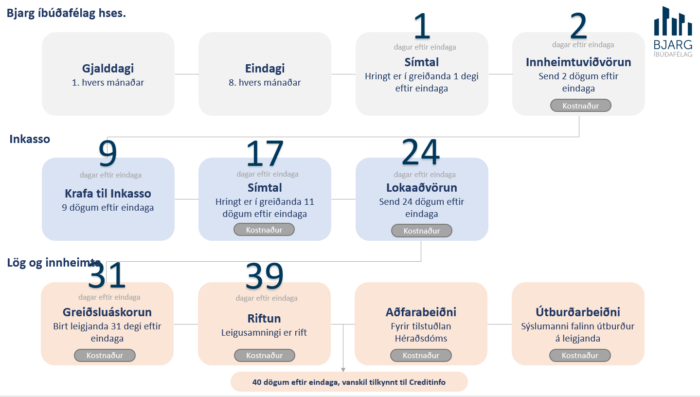 Leiga greiðist fyrirfram í upphafi mánaðar, með gjalddaga 1.hvers mánaðar. Innheimt er með kröfu í netbanka.