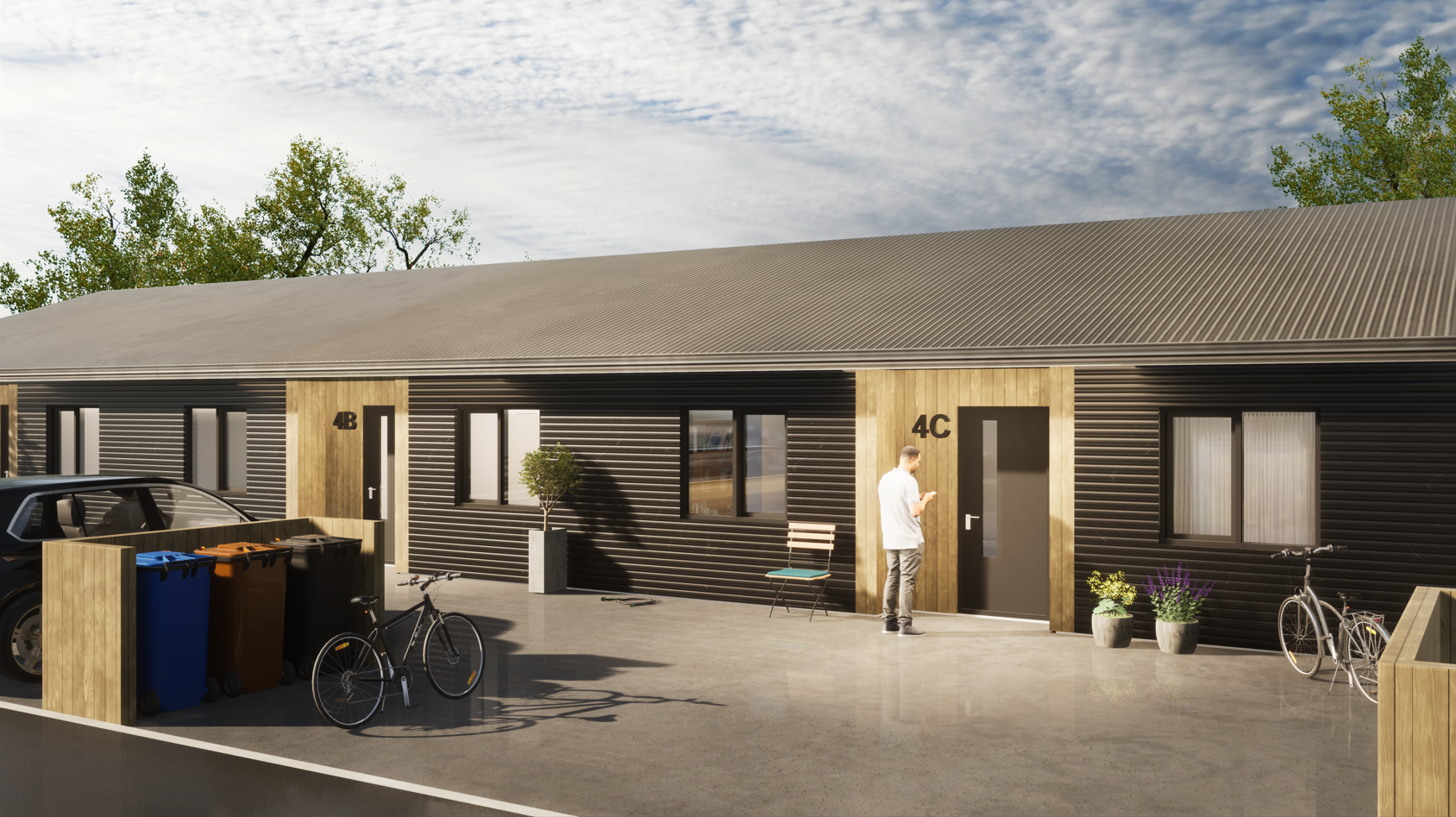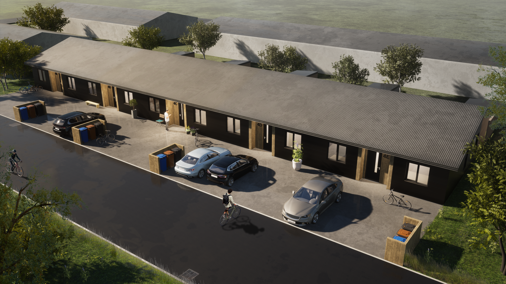 Um er að ræða sérbýli í raðhúsi á einni hæð. Lítill garður í suður fylgir hverri íbúð og allar íbúðir eru með tveimur bílastæðum. Allar íbúðirnar eru 4ra herbergja (3 svefnherbergi). Íbúðirnar voru tilbúnar í desember 2024.