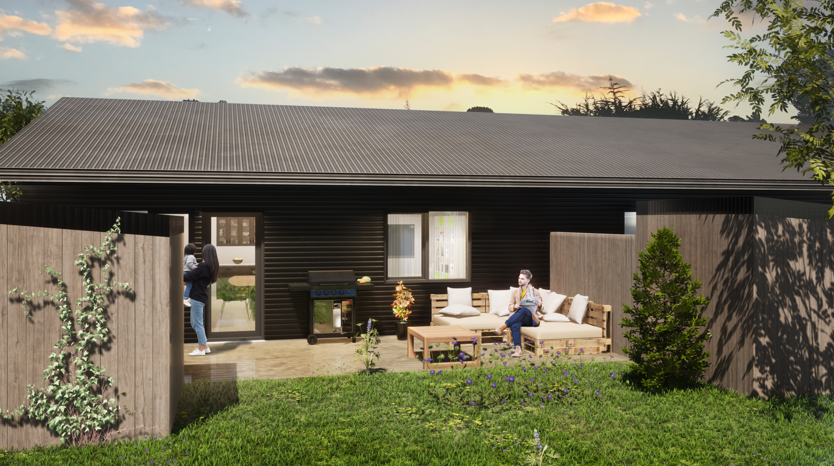 - Verönd með skjólvegg milli íbúða garð megin