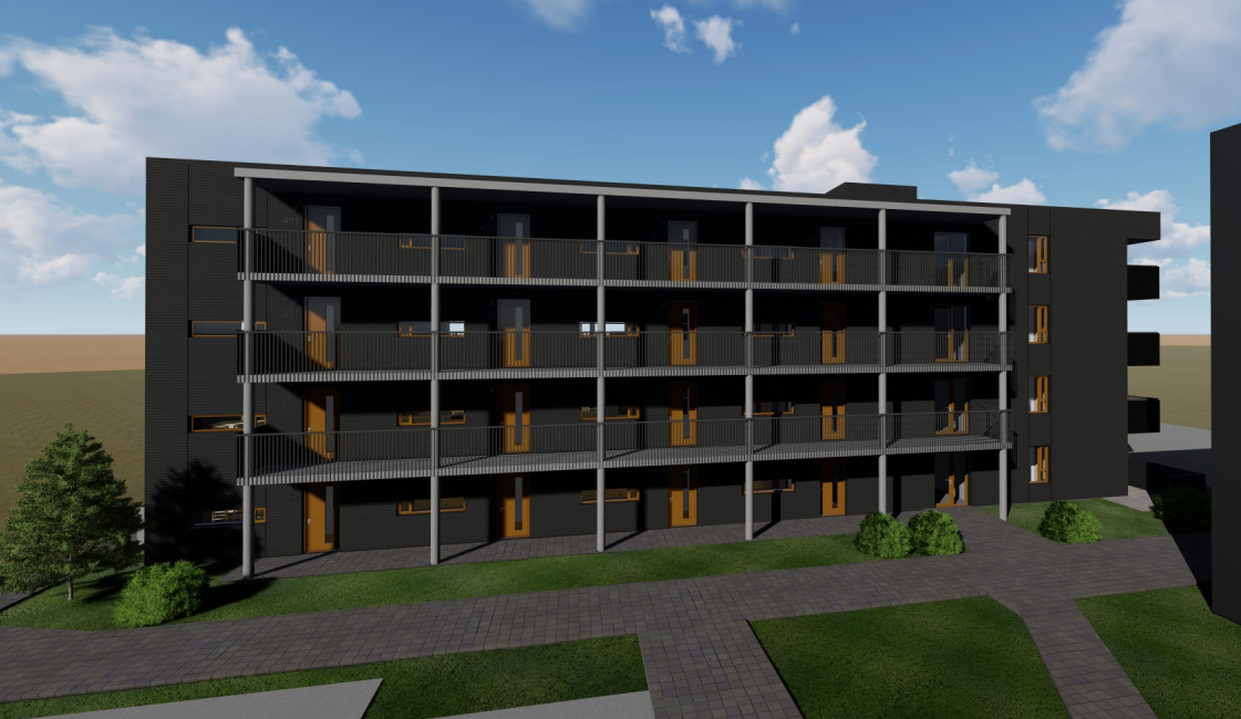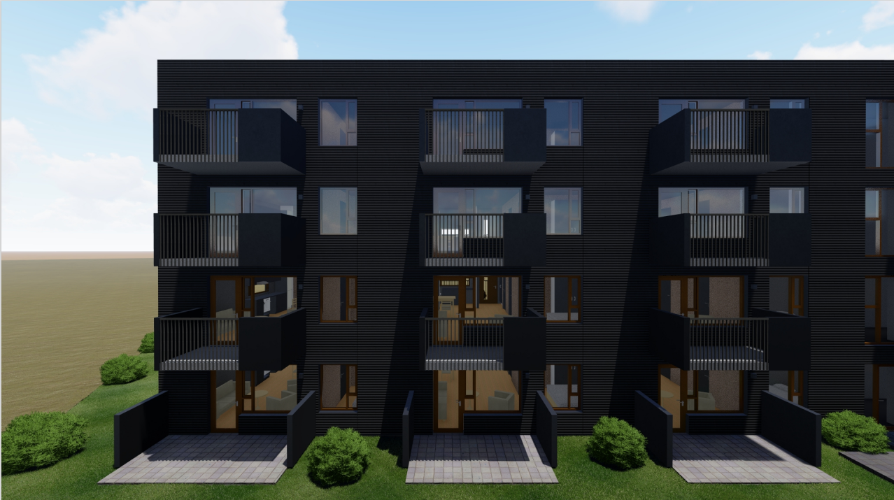 Í Nónhamri 1-3 eru 52 íbúðir, kjallari með geymslum, hjólageymslu ásamt inntaksrými lagna.