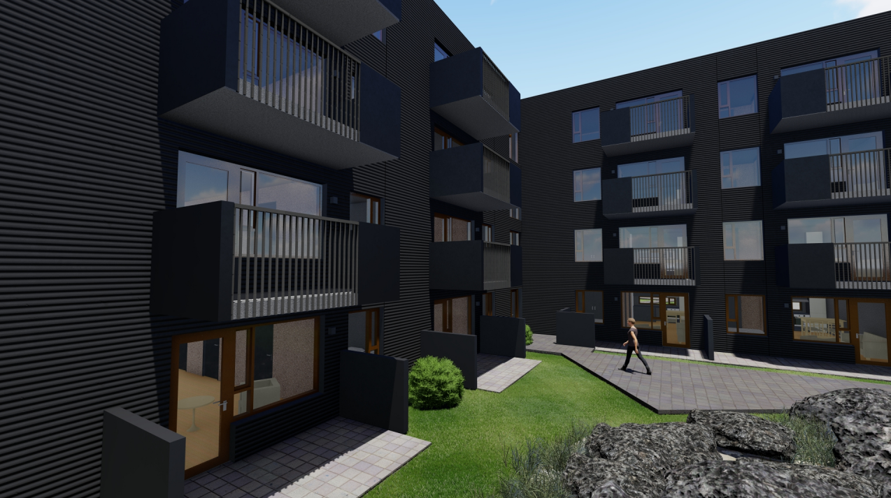 Í Nónhamri 5 eru 32 íbúðum, kjallari með geymslum, hjólageymslu ásamt inntaksrými lagna.