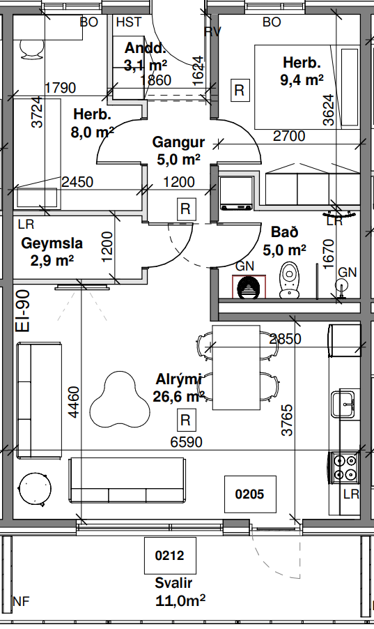 Teikningar eru settar inn með fyrirvara um breytingar sem kunna að hafa átt sér stað á framkvæmdatíma.
