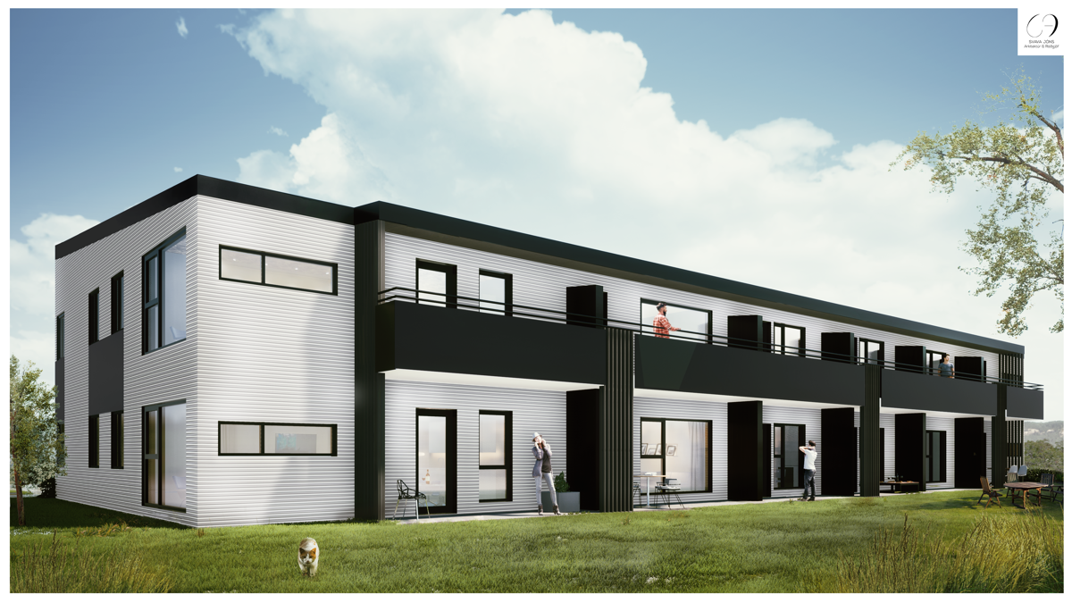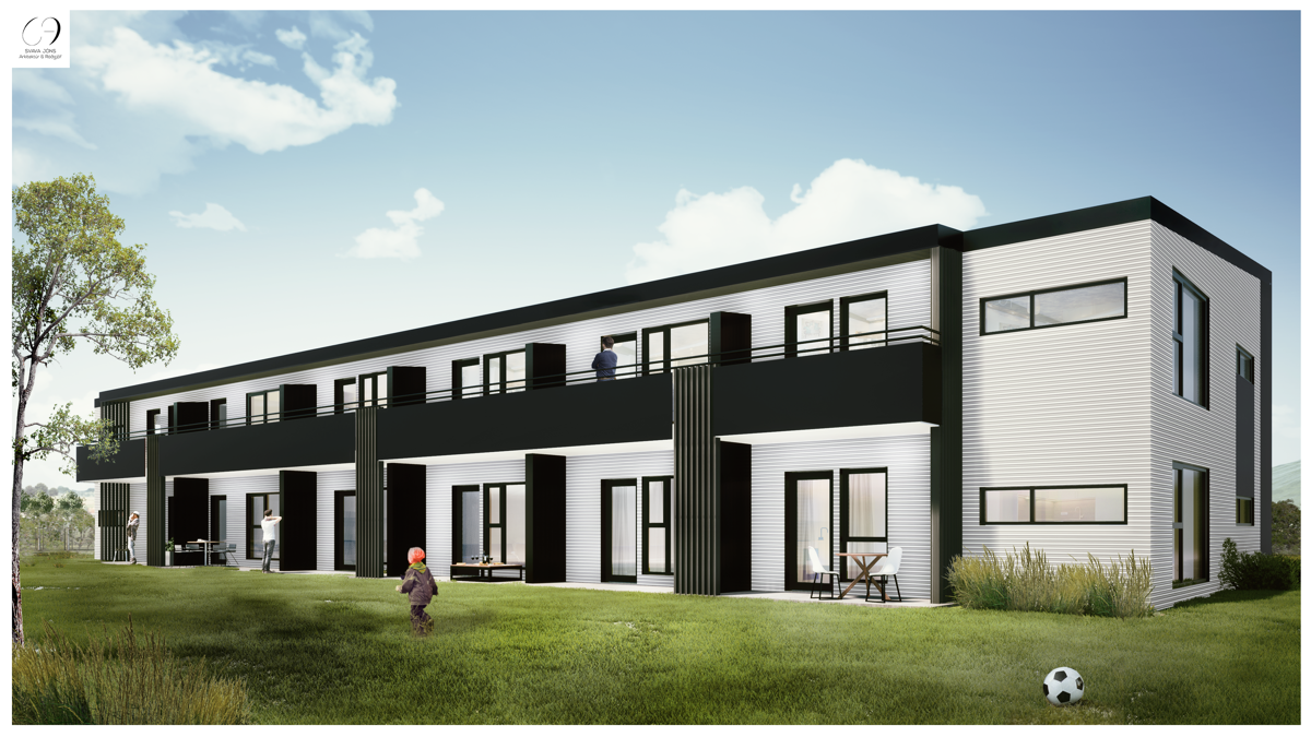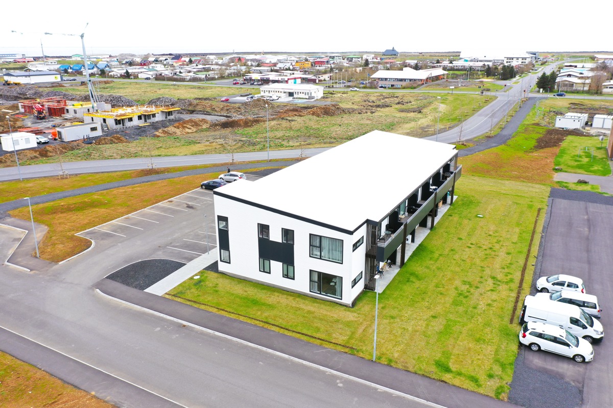 12 leiguíbúðir Bjargs í tveggja hæða fjölbýlishúsi við Sambyggð 14b í Þorlákshöfn.