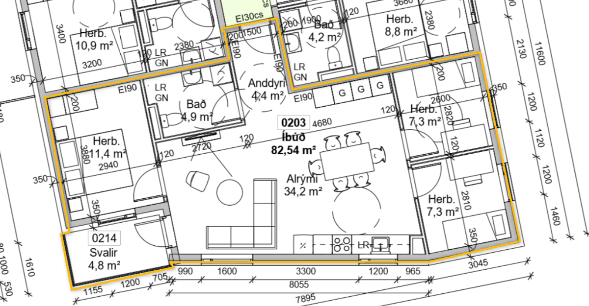 Íbúðin er 82,7 m² endaíbúð og er á 2. hæð í lyftuhúsi.